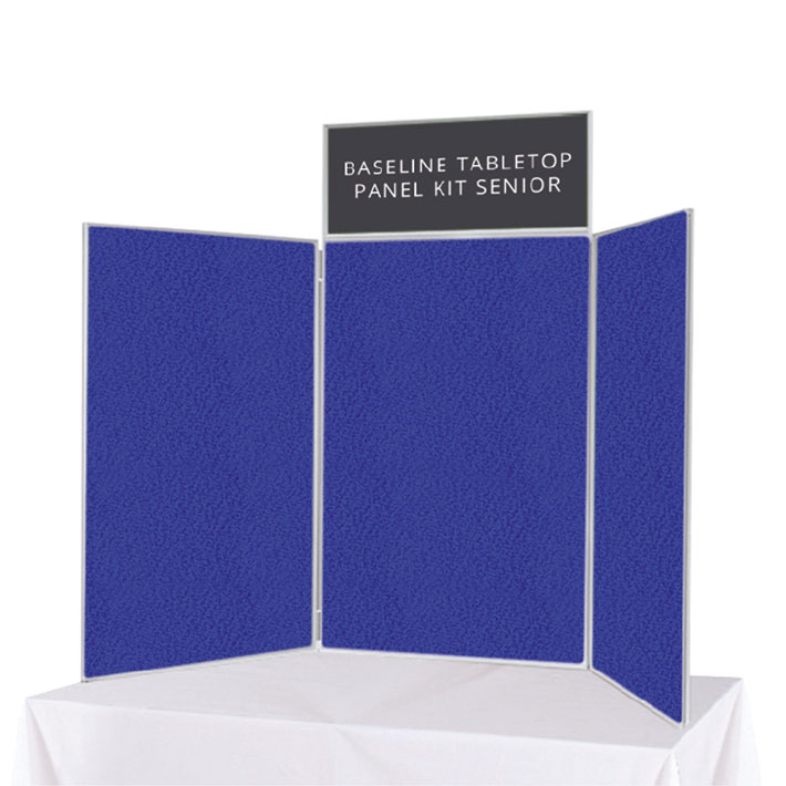 The Senior table top folding kit is a larger, more spacious table-top display system designed for desks, counters and registration tables. It offers a wider layout than the Junior model while remaining lightweight, portable and easy to set up for presentations, open days and exhibitions.
